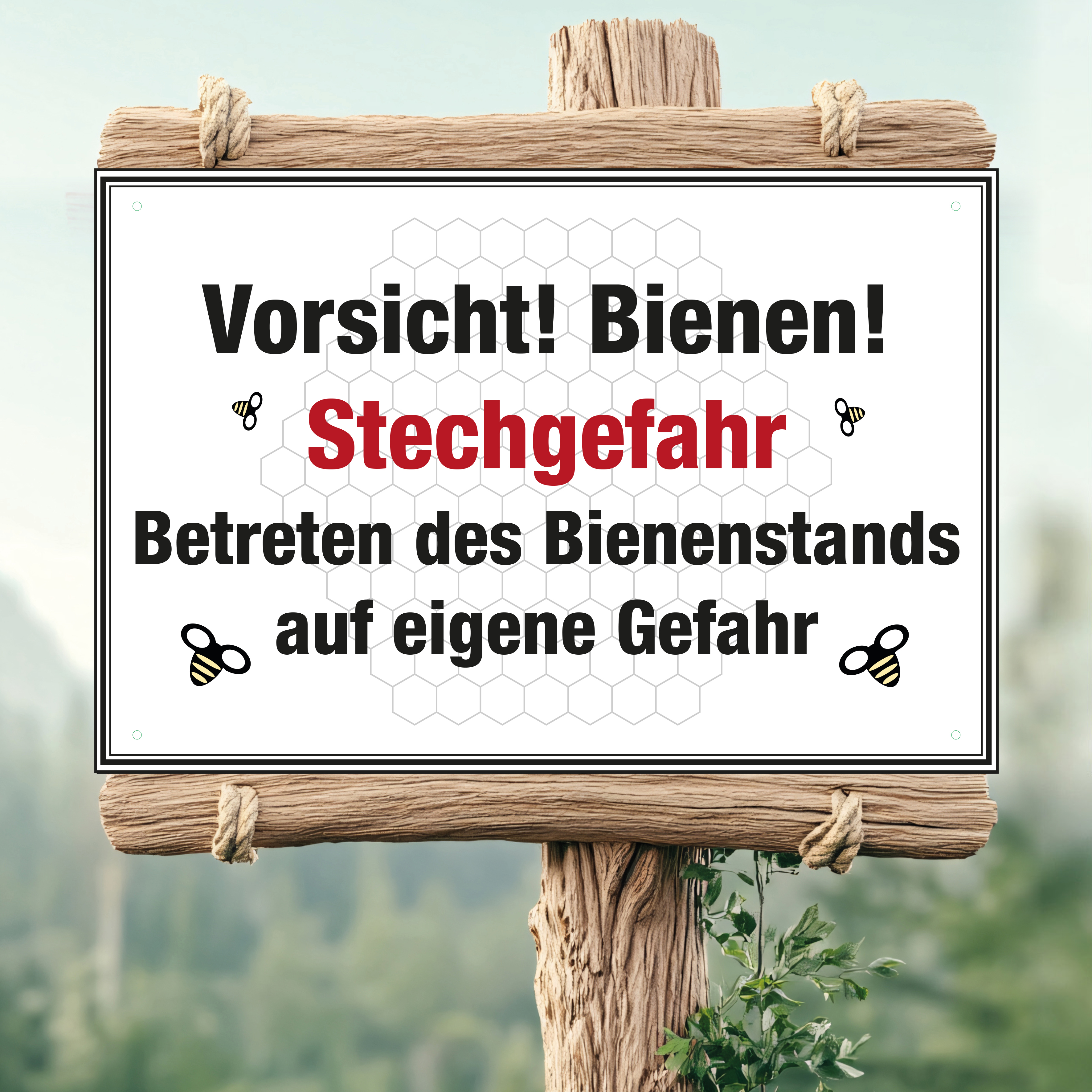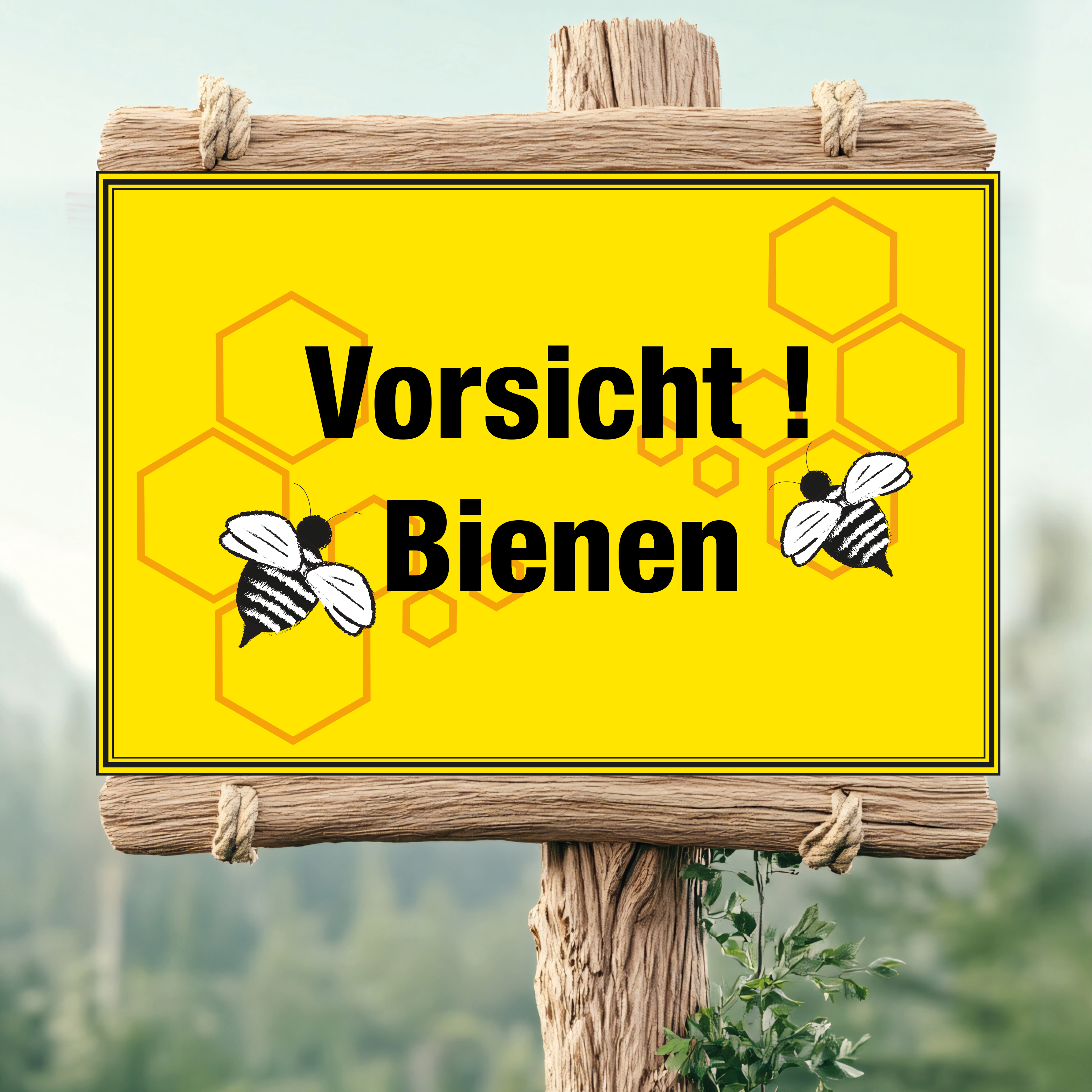 Schild "Vorsicht Bienen!" mit Wabendesign