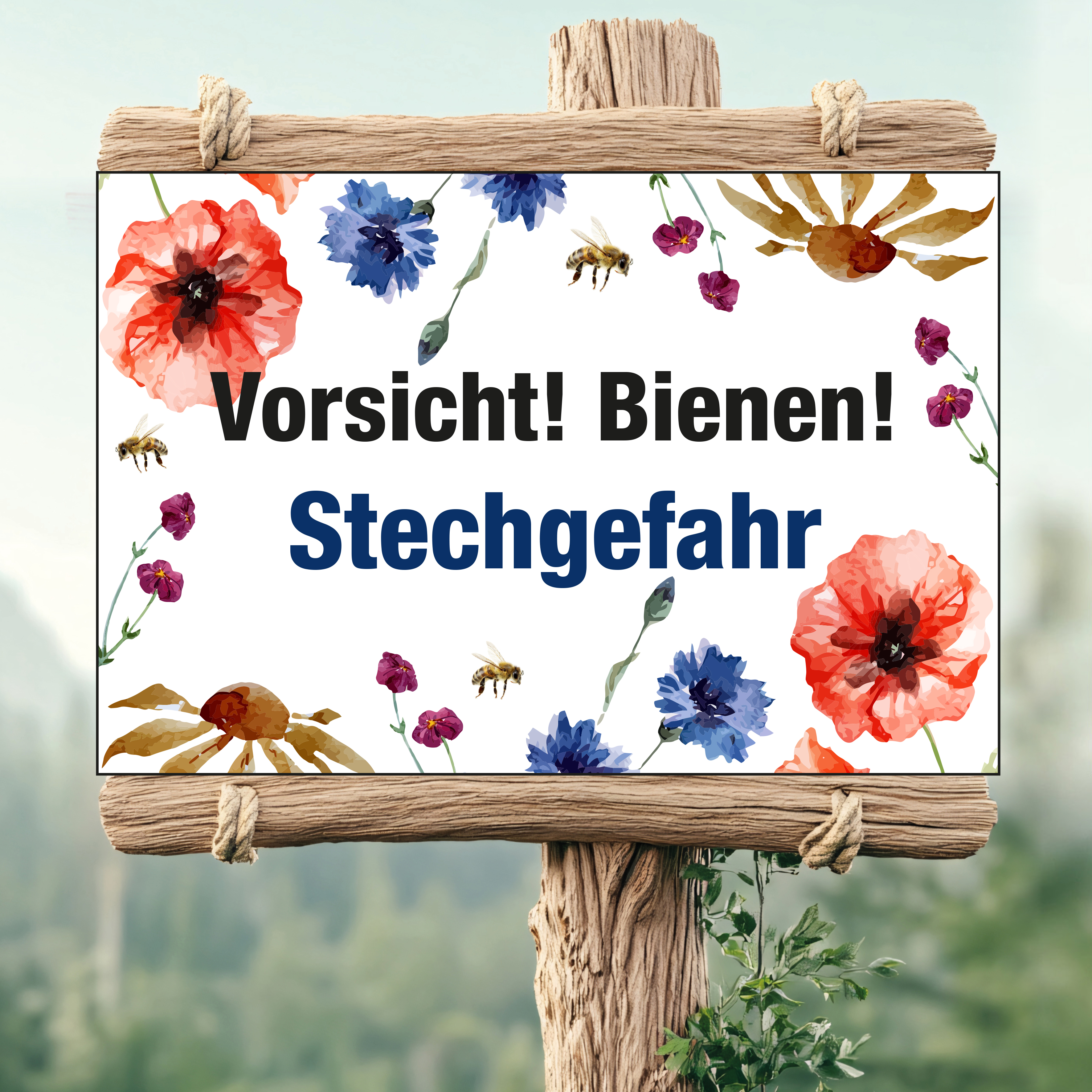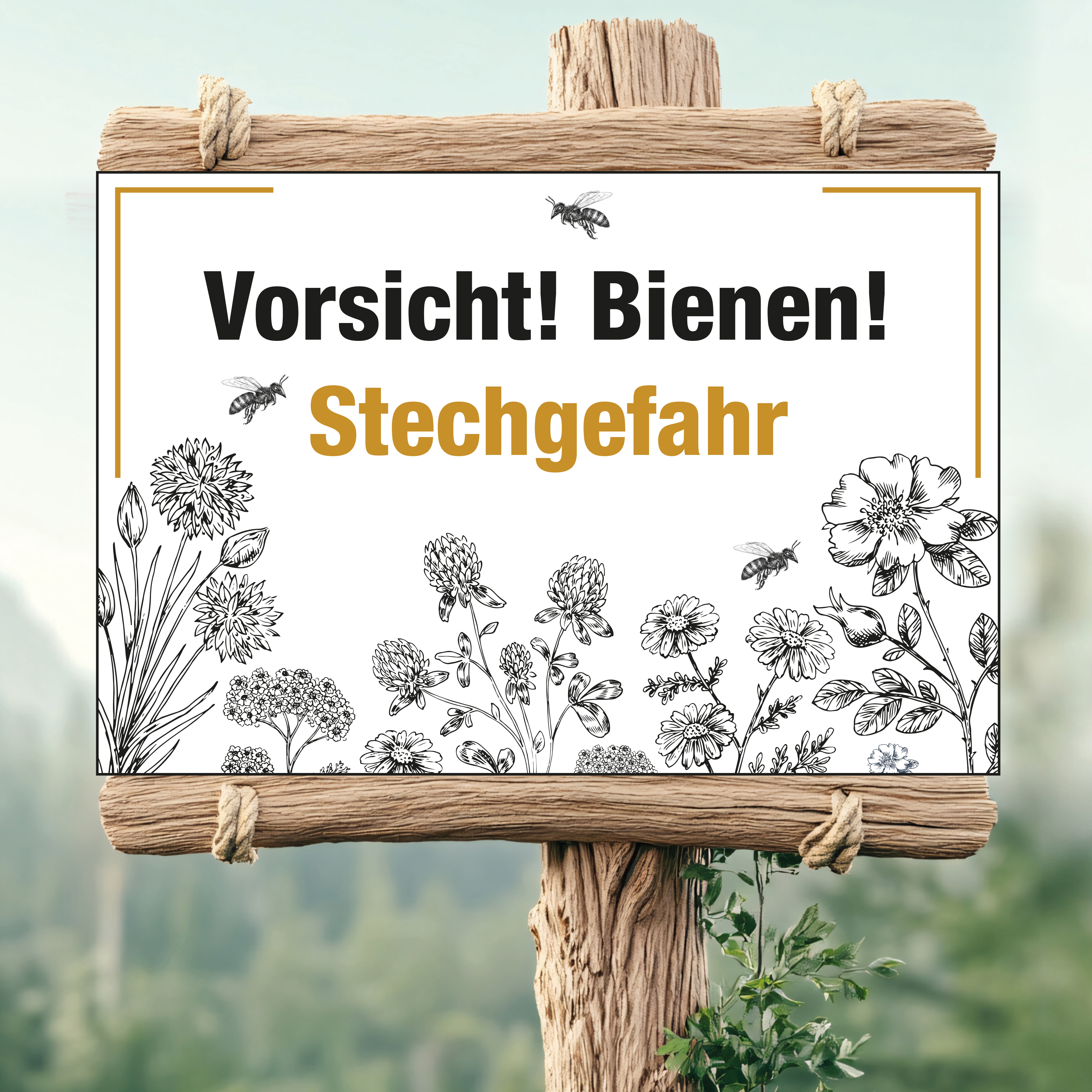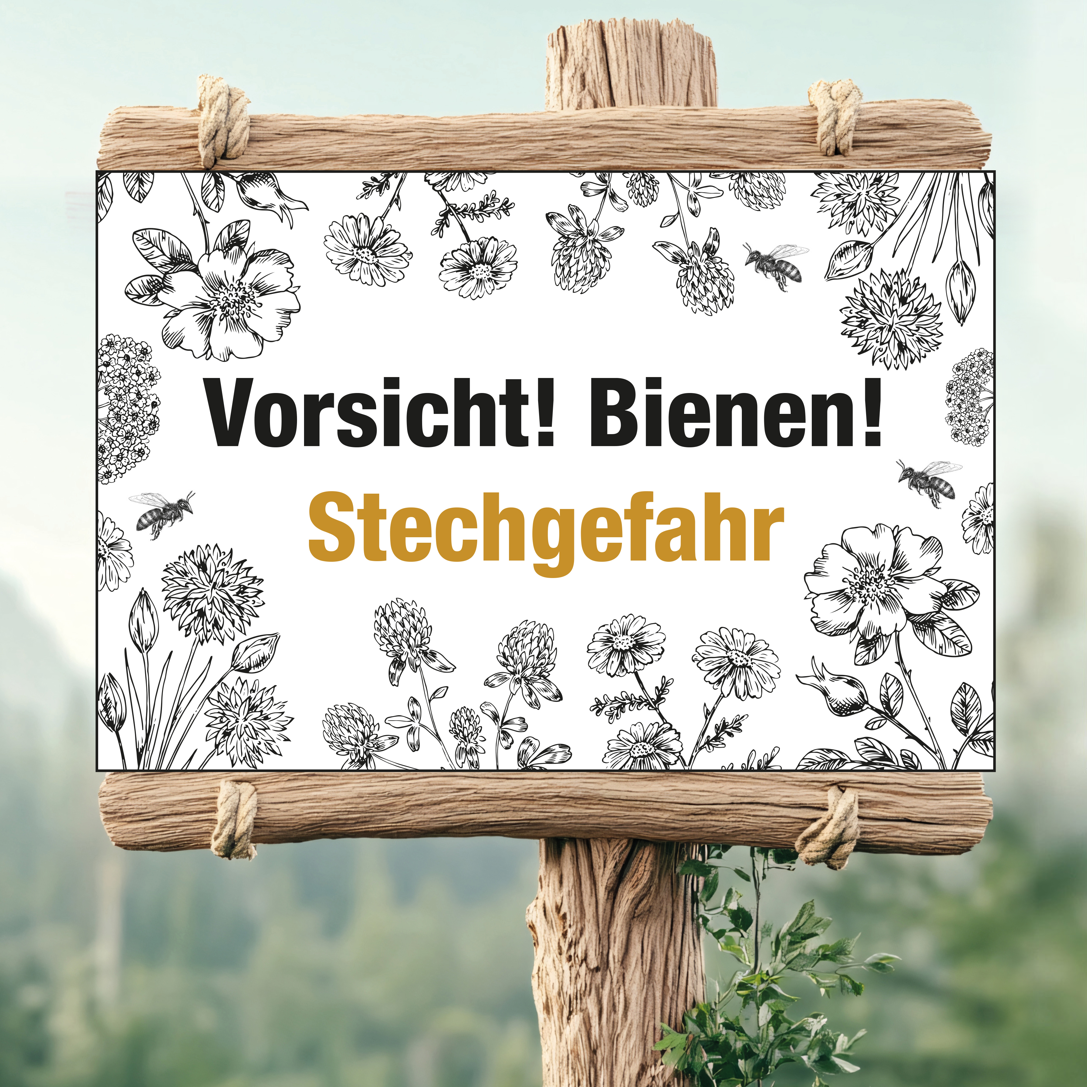 Schild "Vorsicht! Hier leben und arbeiten Bienen!" Floral